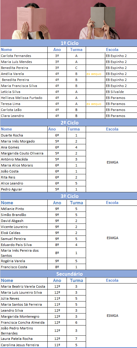 Informação sobre o Aviso Biblioteca Já se encontram disponíveis os resultados do concurso de leitura AEMGA@Ler+.
