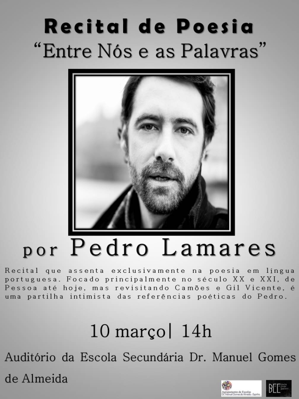A Biblioteca da Escola Dr. Manuel Gomes de Almeida promove, no dia 10 de março, um encontro com o conhecido ator e declamador Pedro Lamares.