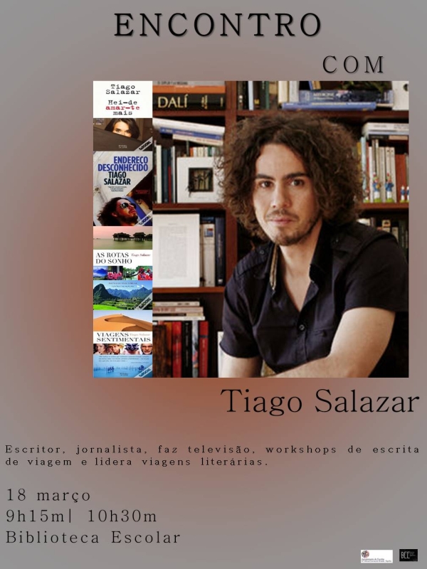 A Equipa da biblioteca da escola secundária Dr. Manuel Gomes de Almeida promove o último Encontro de Autor agendado para o ano letivo 2015/2016, no dia 18 de março, com Tiago Salazar. Autor, jornalista e formador na área da escrita e literatura de viagens, Tiago Salazar foi ainda autor e apresentador do programa de viagens "Endereço Desconhecido", da RTP2.