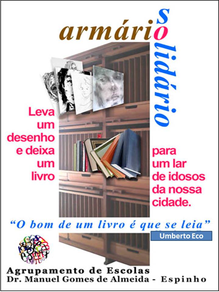 O projeto “Armário Solidário” terá início em janeiro de 2017 e pretende (re) aproximar as crianças/jovens da leitura e ajudar as pessoas idosas institucionalizadas em lares e centros de dia, do concelho de Espinho, a (re) descobrir o prazer de ler e ouvir ler através de encontros periódicos com momentos de partilha de leituras em voz alta, leituras encenadas, musicadas, debates e testemunho. Estes encontros visam proporcionar, de igual modo, um encontro intergeracional, pessoal e culturalmente enriquecedor para todos os intervenientes e a criação de uma maior proximidade dos idosos à comunidade e ao mundo exterior. Ler é fixe! Eu quero participar como Voluntário da Leitura…. e tu? Inscreve-te na biblioteca da Escola Secundária Dr. Manuel Gomes de Almeida, até ao dia 6 de janeiro! Juntos, vamos semear, com a palavra dita, mais um pedaço de imaginação, de criatividade, de memórias e de afectos!